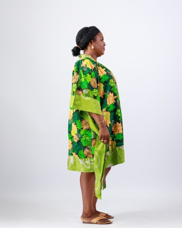Green Bloom Kaftan – Wax Resist Adire Cotton