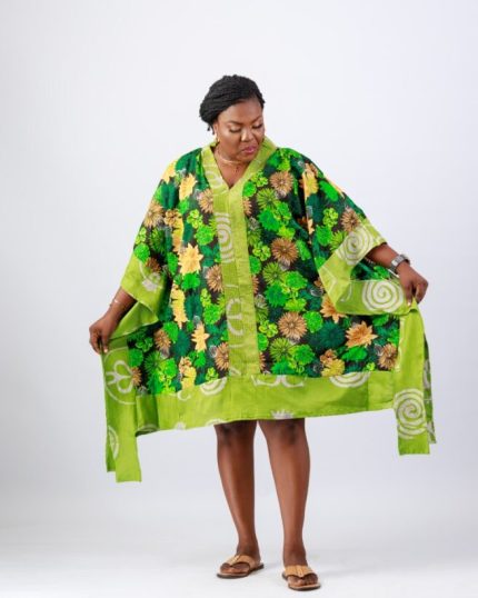 Green Bloom Kaftan – Wax Resist Adire Cotton