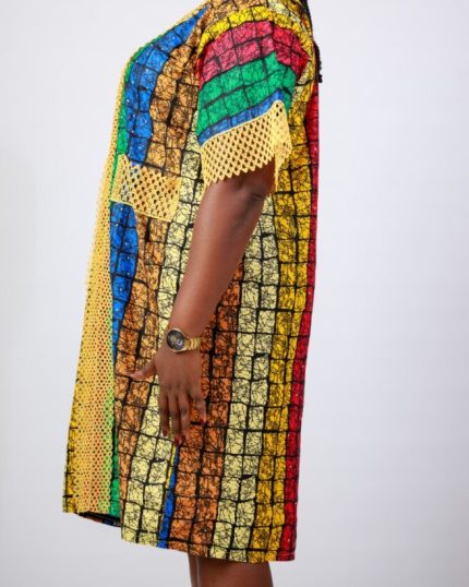 Festival Harmony Dress – Multicolor Wax Resist Adire Cotton