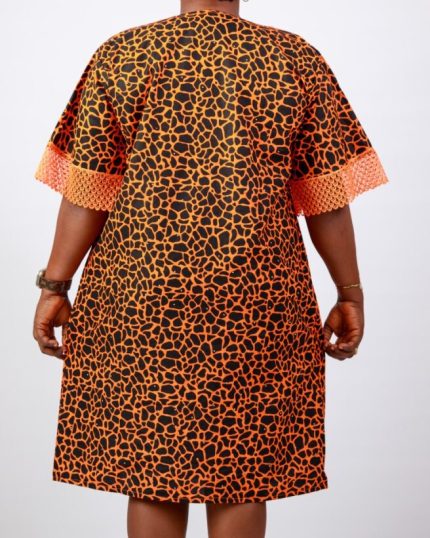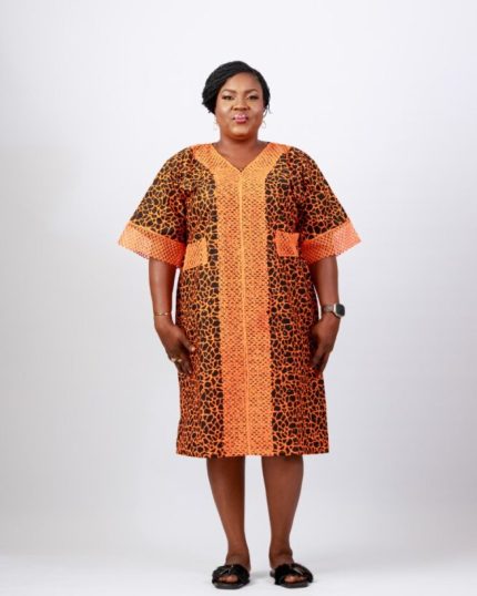 Savanna Glow Midi – Orange & Black Adire